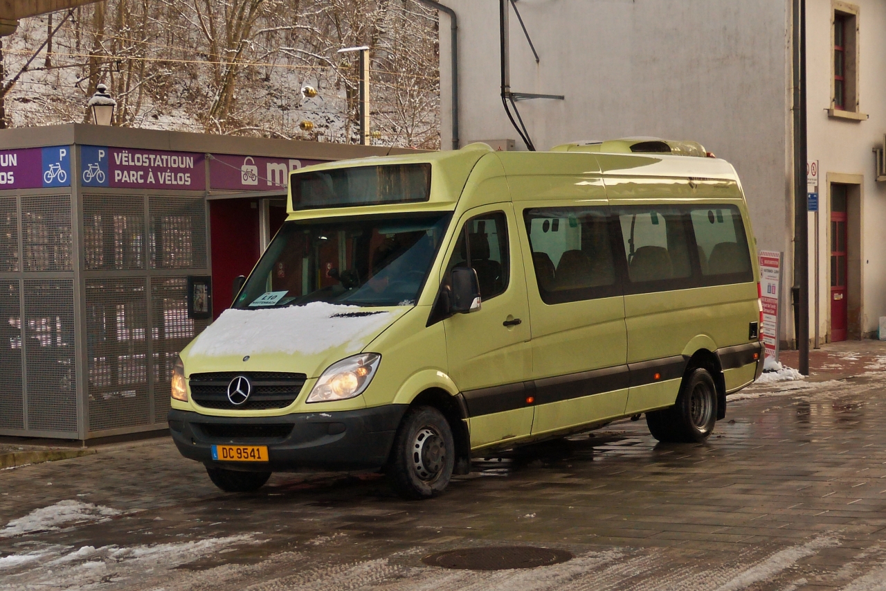 DC 9541, Mercedes Benz Sprinter, von Demy Cars, als SEV auf der Strecke Clervaux – Drauffelt – Wilwerwiltz nach Kautenbach im Einsatz, aufgenommen am Bahnhof in Clerf. 21.01.2023