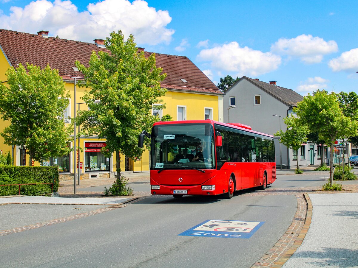 Feldkirchen. Der ehemalige Irisbus Crossway der Graz-Köflacher-Bahn hat ein neues Zuhause bei der Busfirma Weiss aus St. Georgen an der STiefing bekommen. Am 09.06.2023 konnte ich den Bus als Linie 620 im Ortsgebiet von Feldkirchen fotografieren.