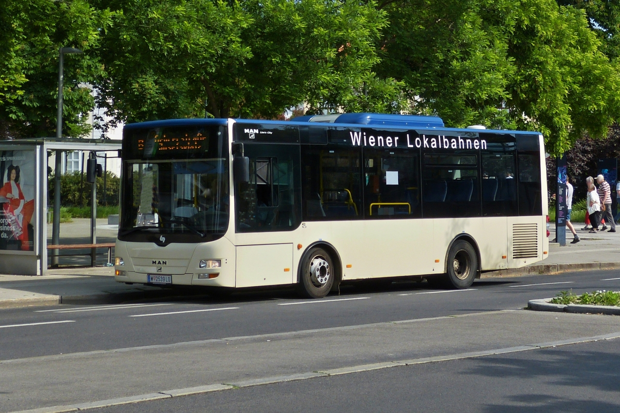 MAN Lion’s City, der Wiener Lokalbahnen, aufgenommen an der Bushaltestelle Baden Bahnhof. 06.2023