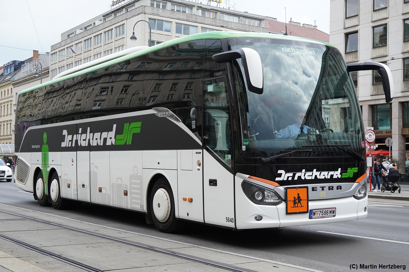 Setra S 517 HD, von Blaguss, in anderer Farbgebung, aufgenommen in den Straßen von Wien. 06.2023