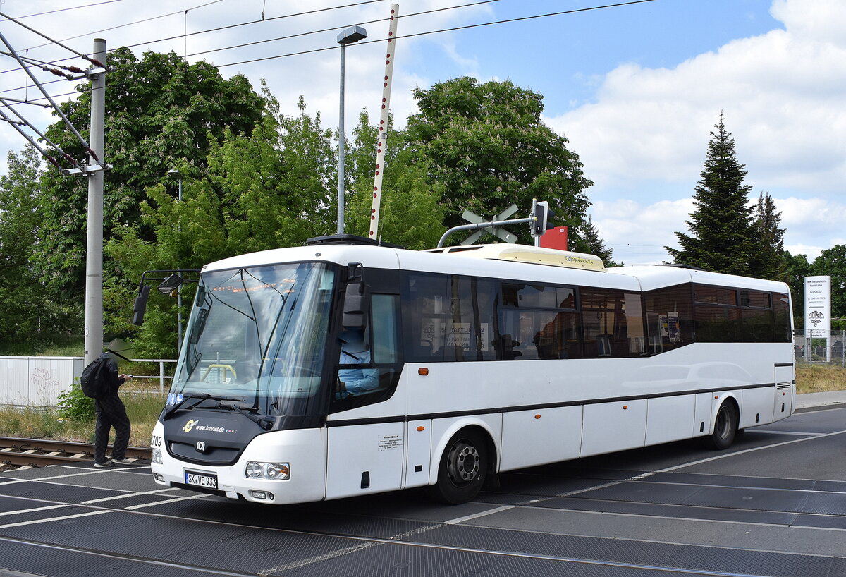 Vetter Verkehrsbetriebe GmbH mit einem SOR BN 12 Low-Entry-Eindeckerbus (Baujahr 2018) im Liniendienst Lutherstadt Wittenberg-Piesteritz am 25.05.23