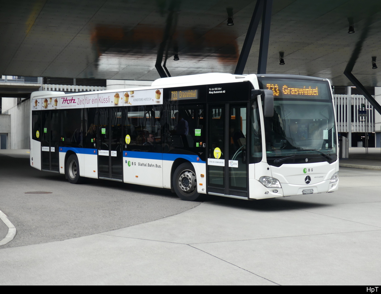 VBG - Mercedes Citaro Nr.47 bei den Haltestellen im Flughafen Zürich am 13.05.2023
