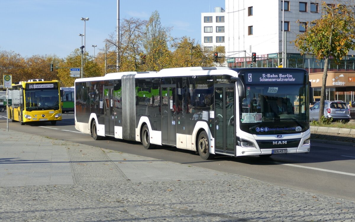 SEV Ersatzverkehr der S Bahn Berlin S42 mit dem MAN Lion's City 18C (New Lion's City Hybrid) vom Reisebüro & Omnibusbetrieb Karsten Brust. Berlin im Oktober 2022.