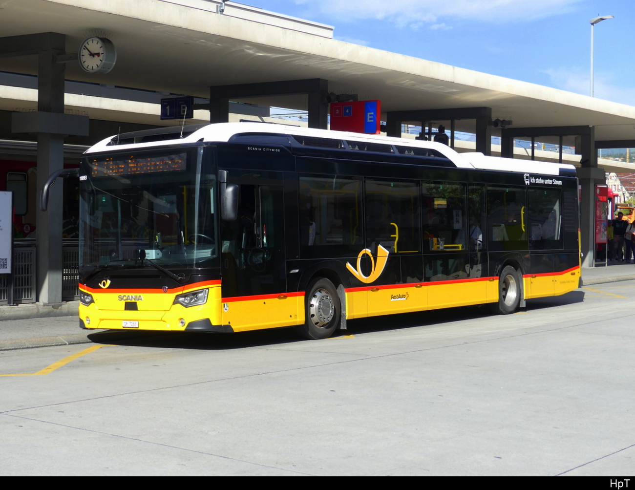 Postauto - Scania Citywide GR 7288 bei den Bushaltestellen vor dem Bhf. Chur am 03.10.2023