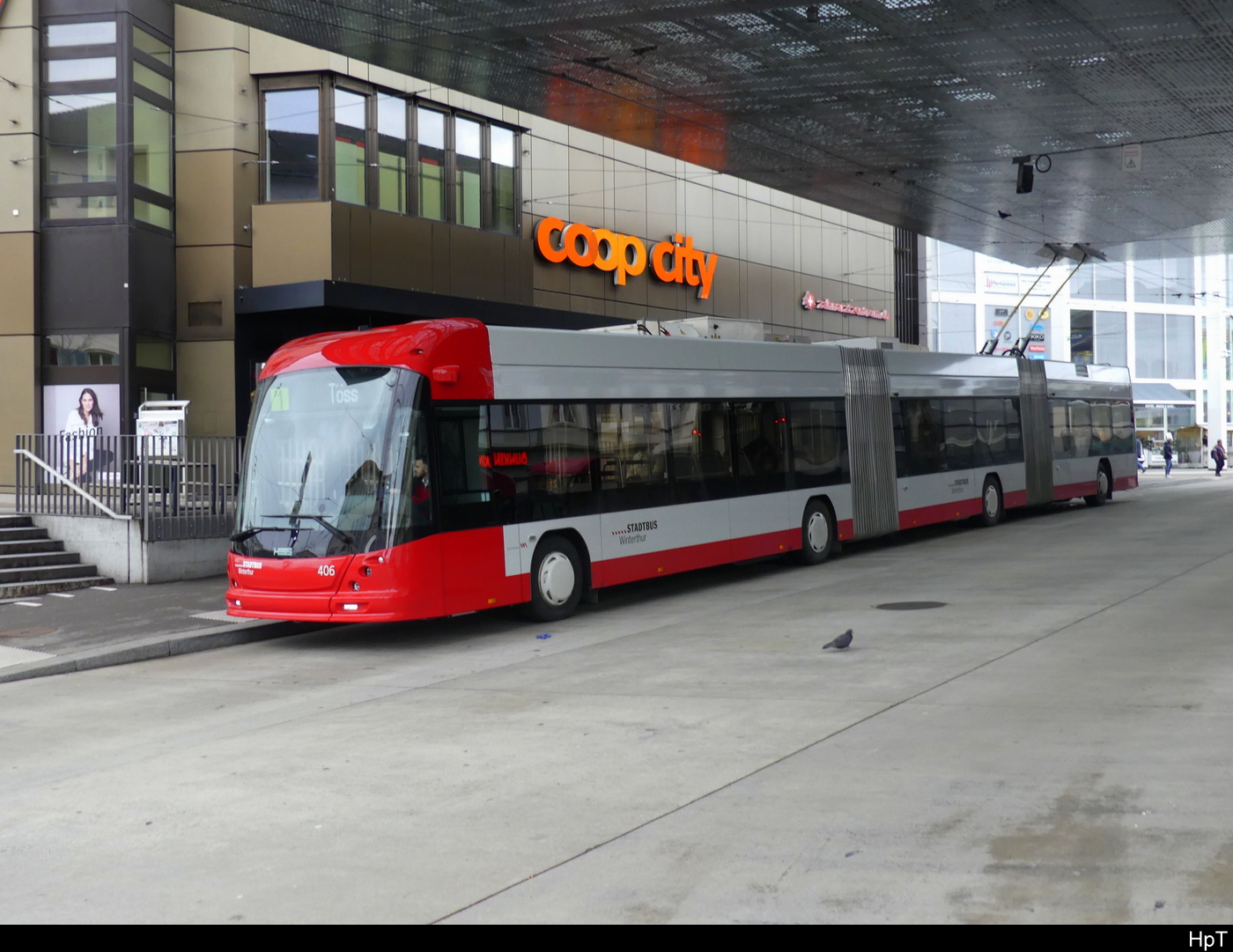 Stadtbus Winterthur - Hess Trolleybus Nr.406 unterwegs auf der Linie 1 bei den Bushaltestellen vor dem Bahnhof in Winterthur am 11.02.2024