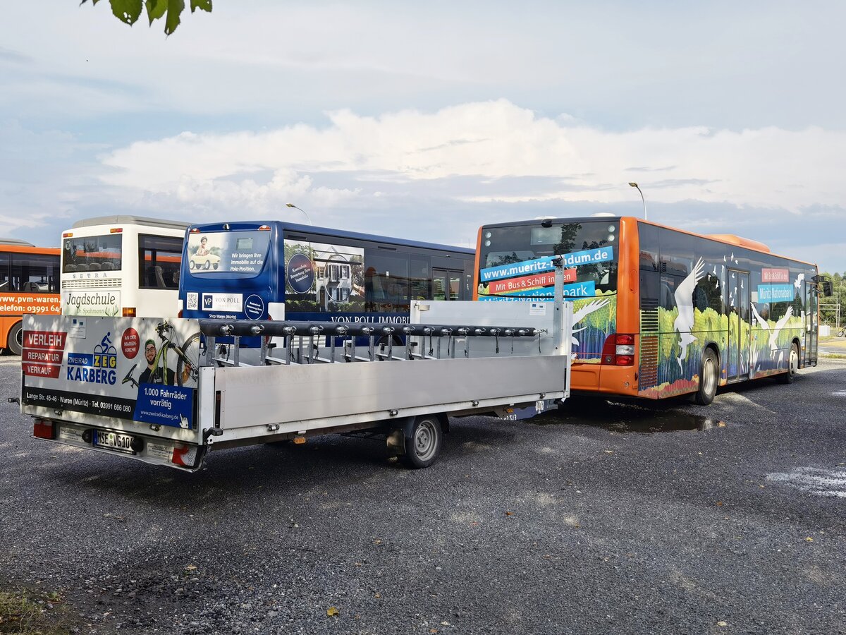 Iveco Crossway mit Fahrradanhänger der MVVG in Röbel am 25.07.2022