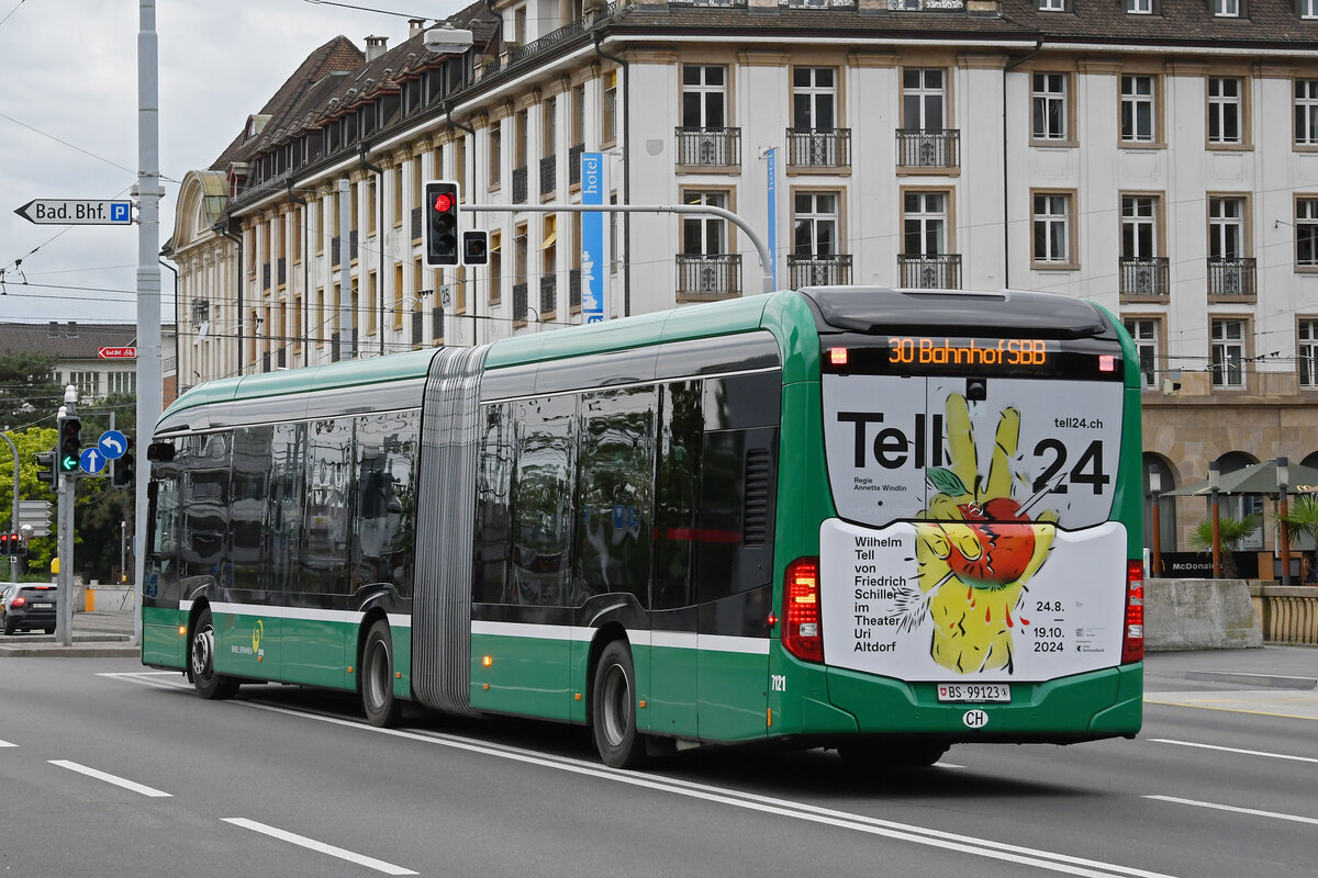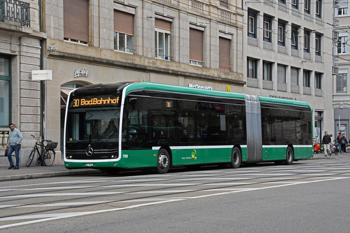 BVB - Mercedes e Citaro Nr.7125 BS 99127 unterwegs auf der Linie 30 in Basel am 2024.06.09
