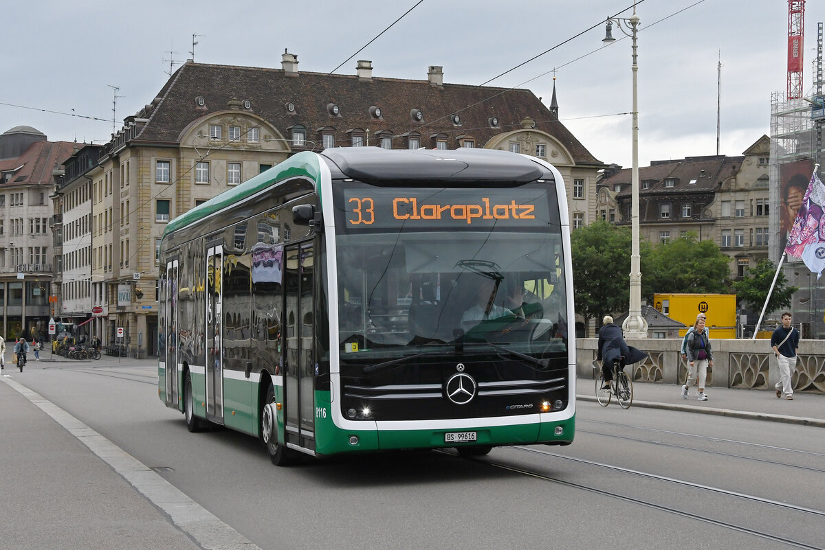Mercedes eCitaro 8116, verlässt am 27.05.2024 die Linie 33 und fährt zum Laden ins Klybeck Areal.
