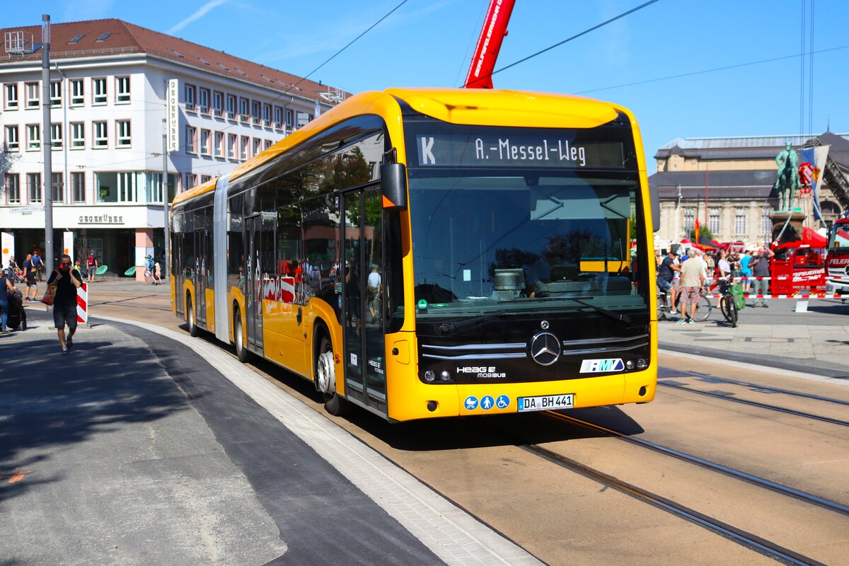 HEAG mobiBus Mercedes Benz eCitaro 2 G Wagen 440 am 07.09.24 in Darmstadt Innenstadt