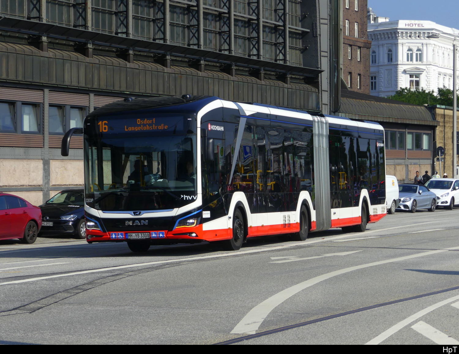 Hamburg HHA - Man Lion`s City Hybrid Nr.3308 HH.YB 3308 mit Werbung unterwegs auf der Linie 16 in der Stadt Hamburg am 2024.09.17