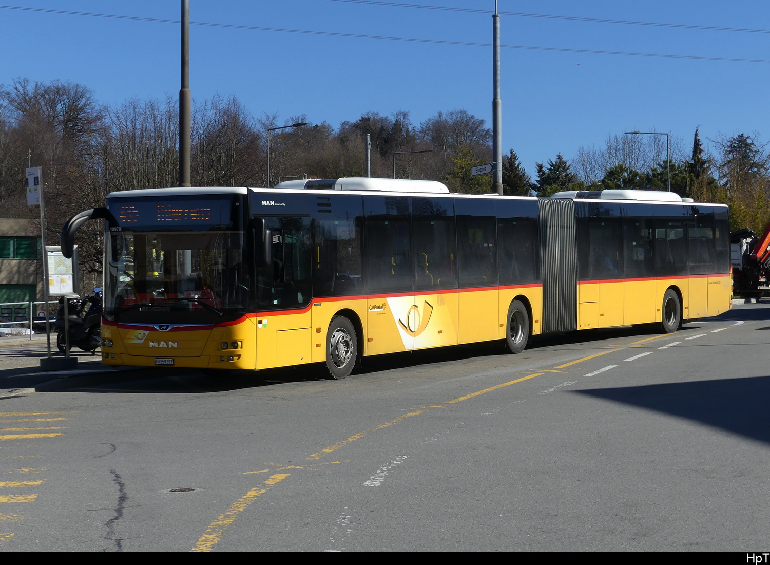 Postauto - MAN Lion`s City BE 416004 beim Bhf. Kerzers am 08.03.2025