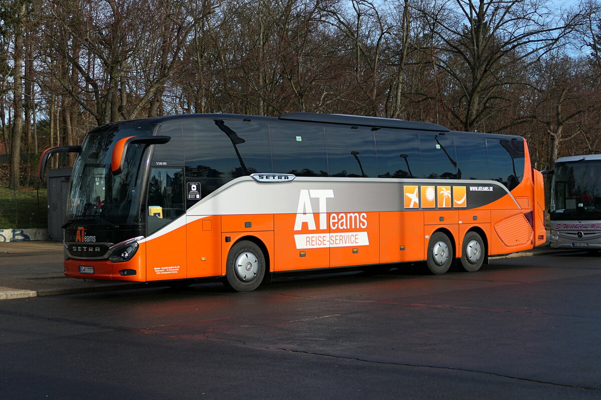 Setra S 516 HD, ''A Teams-Touristik'' Reiseservice im Februar 2025. (Heckkoffer)