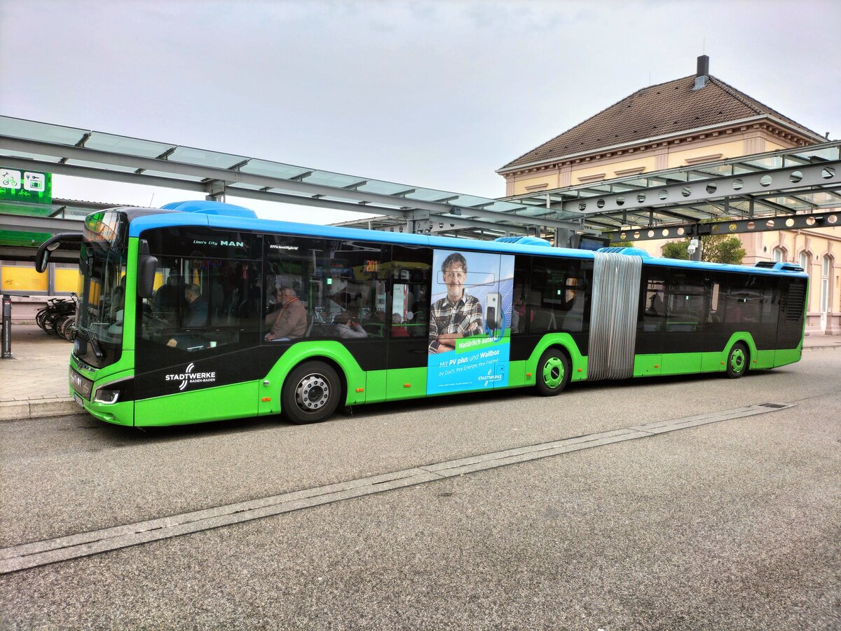 MAN Lion's City 18C, Stadtwerke Baden-Baden, Wagen 543, am Bahnhof Baden-Baden am 30.09.2025